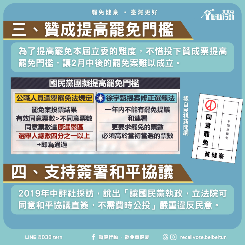 為了提高罷免本屆立委的難度,不惜投下贊成票提高罷免門檻,讓2月中後的罷免案難以成立。