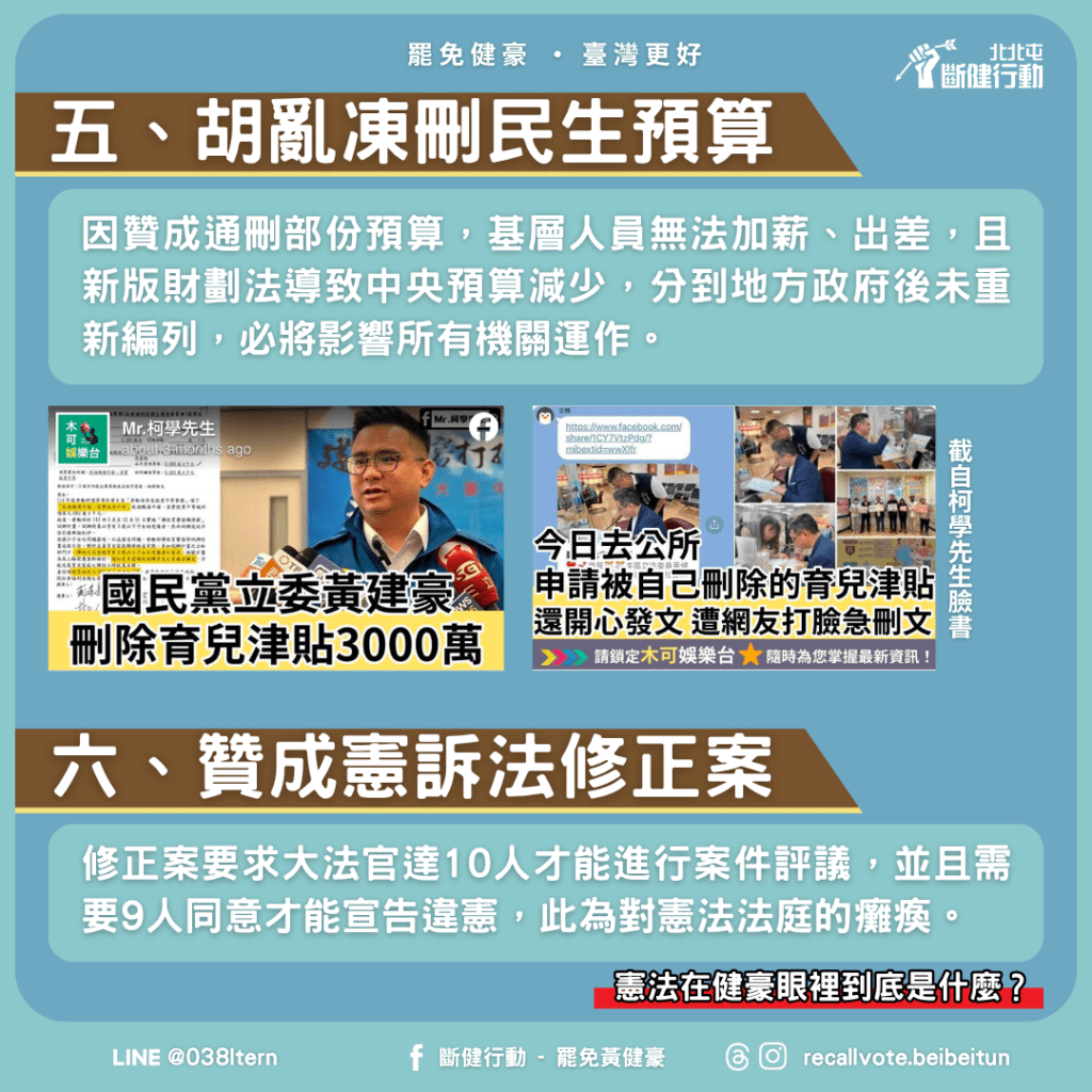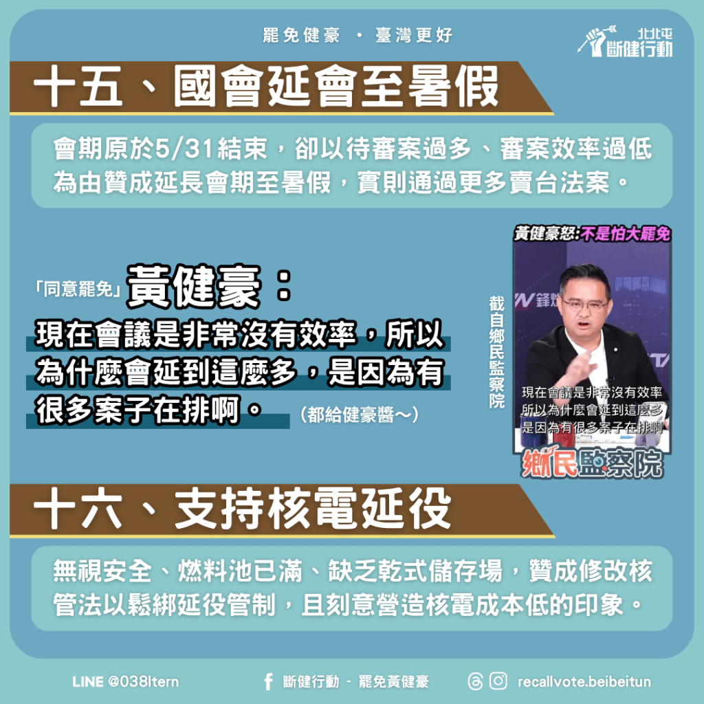 726罷免投票是選民共同理性爭取的機會,在行使投票權之前,有必要知道為何投下這一票,故在此列出黃健豪的18項罪狀: