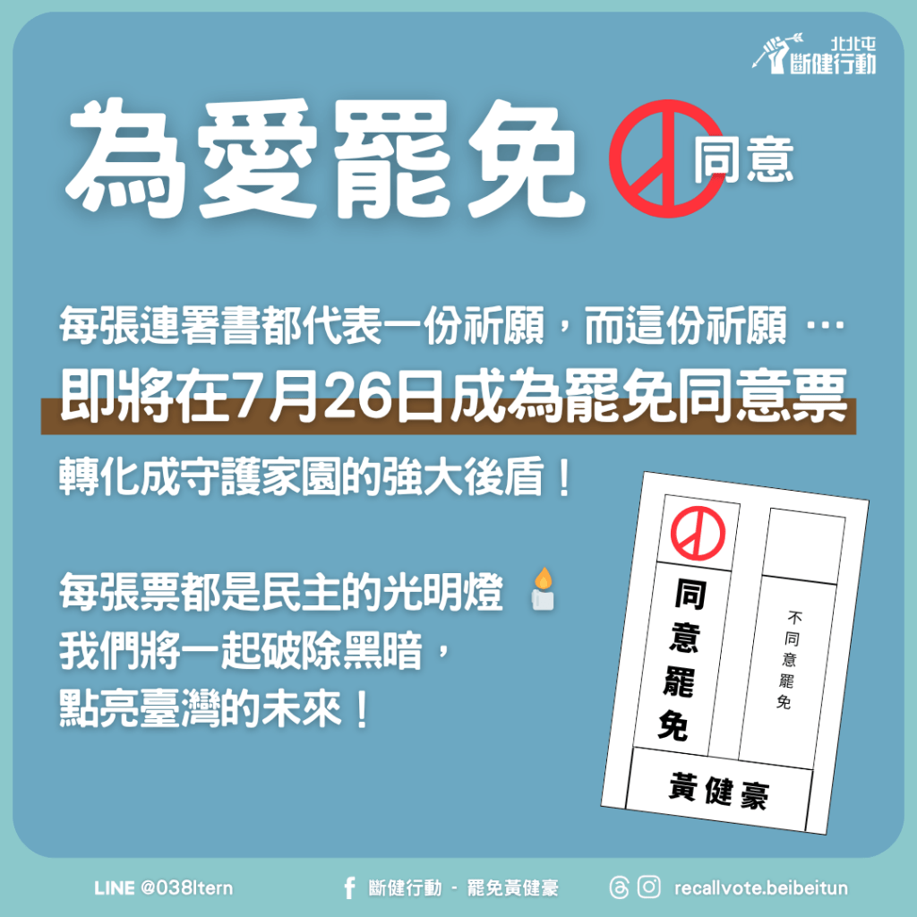 每張連署書都代表一份祈願,而這份祈願,即將在7月26日成為罷免同意票,轉化成守護家園的強大後盾!